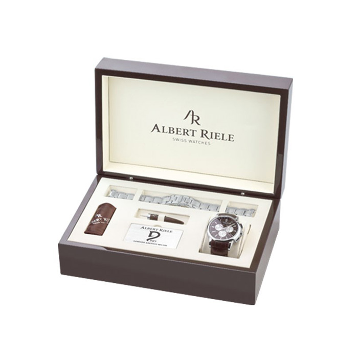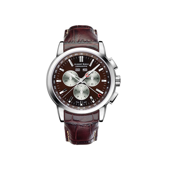 ساعت مچی «آلبرت ریله» (Albert Riele) مدل «711GQ07-SS83I-LN-K1» از شیکترین و لوکسترین ساعتهای کلاسیکاسپرت سوییسی و از جمله مدلهای تولید محدود بوده که تنها 250 عدد از آن تولید شده است. این مدل طراحی فوقالعاده جذاب و دقت و کیفیتی بالا دارد و در یک بستهبندی لوکس همراه یک بند استیل اضافه طراحی شده است تا بیشازپیش توجه آقایان شیکپوش و طرفداران این اکسسوری لوکس را به خود جلب کند. ترکیب رنگ قهوهای و نقرهای و چیدمان بسیار زیبای صفحه از عوامل بسیار مهم در جذابیت ظاهری این ساعت هستند. شیشهی سافایر و ضدخش و جنس استیل بدنه و کیفیت بالای هر دو بند از مشخصات کیفی این محصول بهشمار میروند که نشان از کیفیت و ماندگاری بالای آن دارند. روی صفحه شاهد تعبیهی سه تاریخشمار هستیم که با کرنوگرافی کامل و کارآمد همراه شده است. دو تاریخشمار بالای صفحه، نام روز هفته و نام ماه میلادی را نمایش میدهند و عقربهی چهارمی که در مداری 31 عددی میچرخد، شمارهی روز ماه را بر روی حاشیهی صفحه نشان میدهد. کرنوگراف یا زمانسنج ساعت هم از سه صفحهی فرعی و نقرهایرنگ برخوردار است که عبارتاند از: یک شمارشگر دهم ثانیه، یک ثانیهشمار و یک دقیقهشمار سیدقیقهای. نشانگرهای خطی برجسته و چاپی، عقربههای اصلی بزرگ و شبتاب و ثانیهشماری زیبا و سوزنیشکل دیگر عناصری هستند که روی این صفحه مشاهده میشوند. مقاومت مطلوب در برابر آب هم در شرایط روزمره نظیر شستوشوی دست یا بارش باران، از نفوذ آب جلوگیری میکند. درمجموع این ساعت تولید محدود لوکس و جذاب را میتوان یکی از بهترین گزینهها برای آقایان شیکپوش در هر سن برشمرد. با توجه به مشخصات یادشده و همچنین بستهبندی مشابه ست هدیه و بهرهمندی از دو بند متفاوت، میتوان این مدل را بهعنوان هدیهای لوکس، ارزشمند و ماندگار نیز در نظر گرفت.